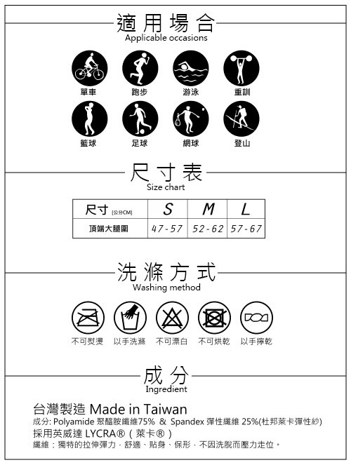 材質:75% POLYAMIDE聚醯胺纖維 + 25% SPANDEX杜邦萊卡彈性紗